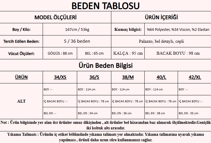 Ürün İçeriği : %64 Polyester, %34 Viscon, %2 Elastan
