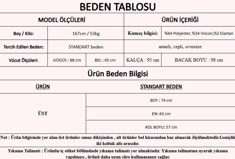 Modelin Beden : STANDART BEDEN