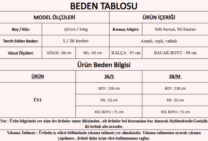 Model Ölçüleri : 167cm/53kg